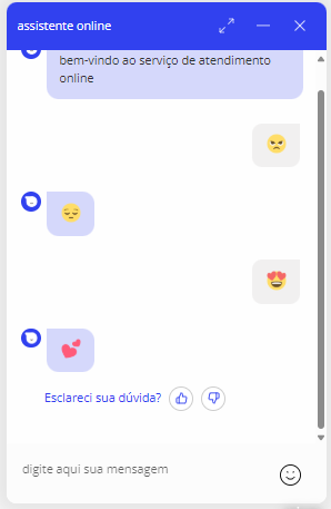 ✅É importante que você saiba que os indicadores de eficácia são baseados na avaliação do usuário sobre cada interação com o assistente virtual. Esse feedback é coletado por meio dos ícones de polegar para cima ou para baixo, visíveis ao lado da pergunta: "Esclareci sua dúvida?".